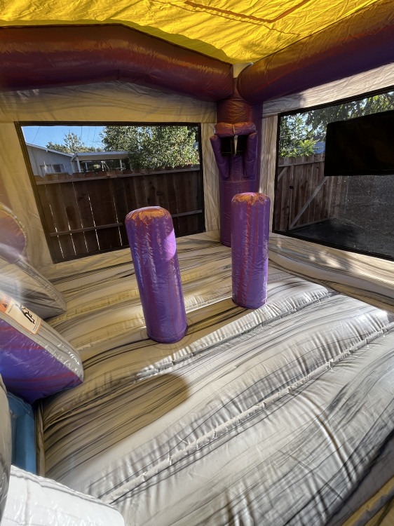 Bring double the action to your next party with the Thunder Dual Lane Combo. This all-in-one rental combines two side-by-side lanes for racing, a roomy bouncing area, and an integrated slide — perfect for siblings, friends, or any group that wants competitive fun. The low-profile bounce floor gives kids space to jump and play safely before they race down the slide lanes, while the dual lanes let two participants go head-to-head for fast, exciting finishes. Designed for easy supervision, the open front and clear sightlines help adults keep an eye on activity. Ideal for backyard parties, school events, or community gatherings, the Thunder Dual Lane Combo delivers energetic, shared play that keeps kids engaged and smiling.